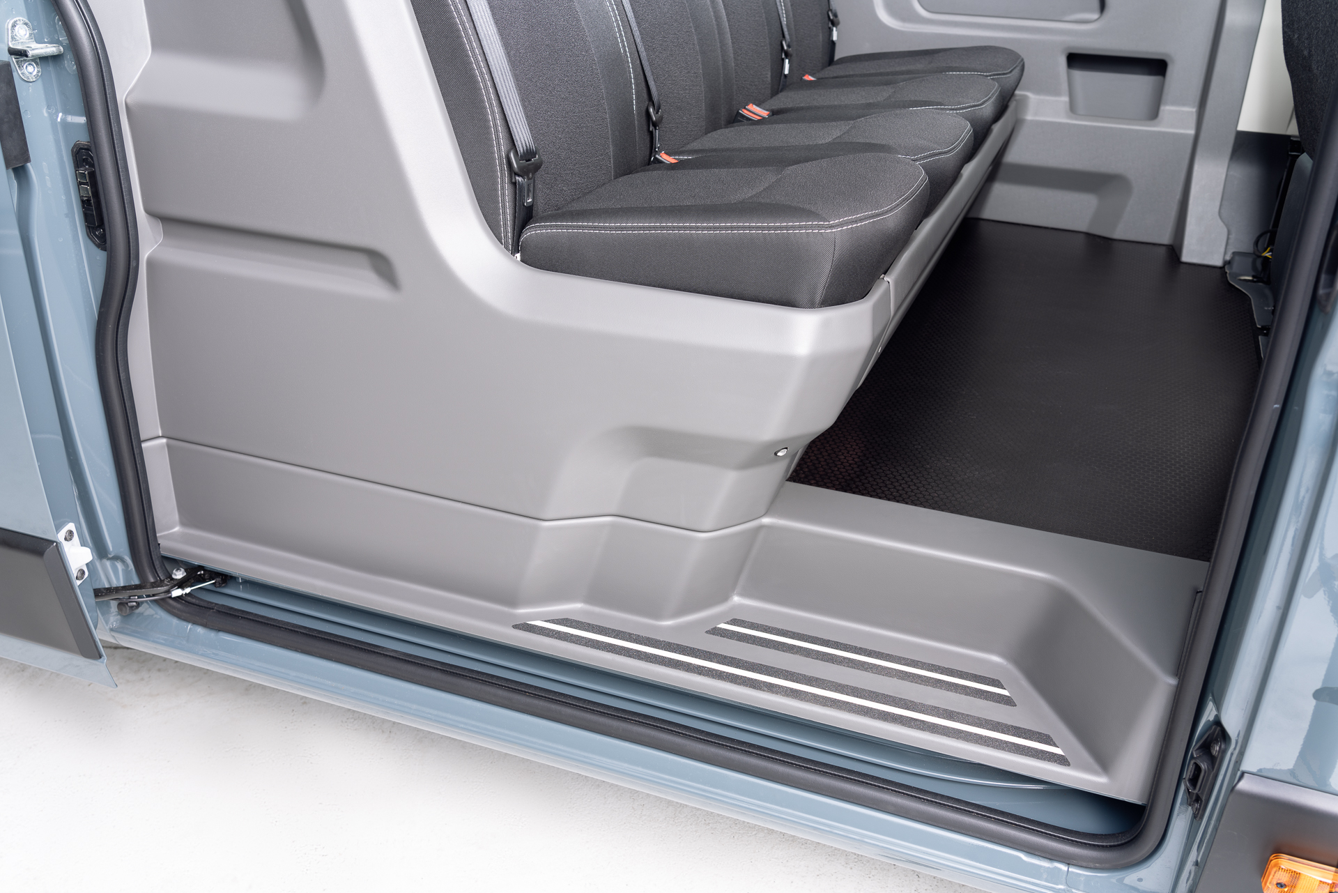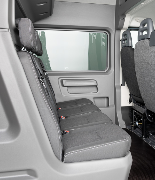The Dual Cab+ kit complies with UN/ECE regulations and includes homologated seat belts with buckle monitoring systems.