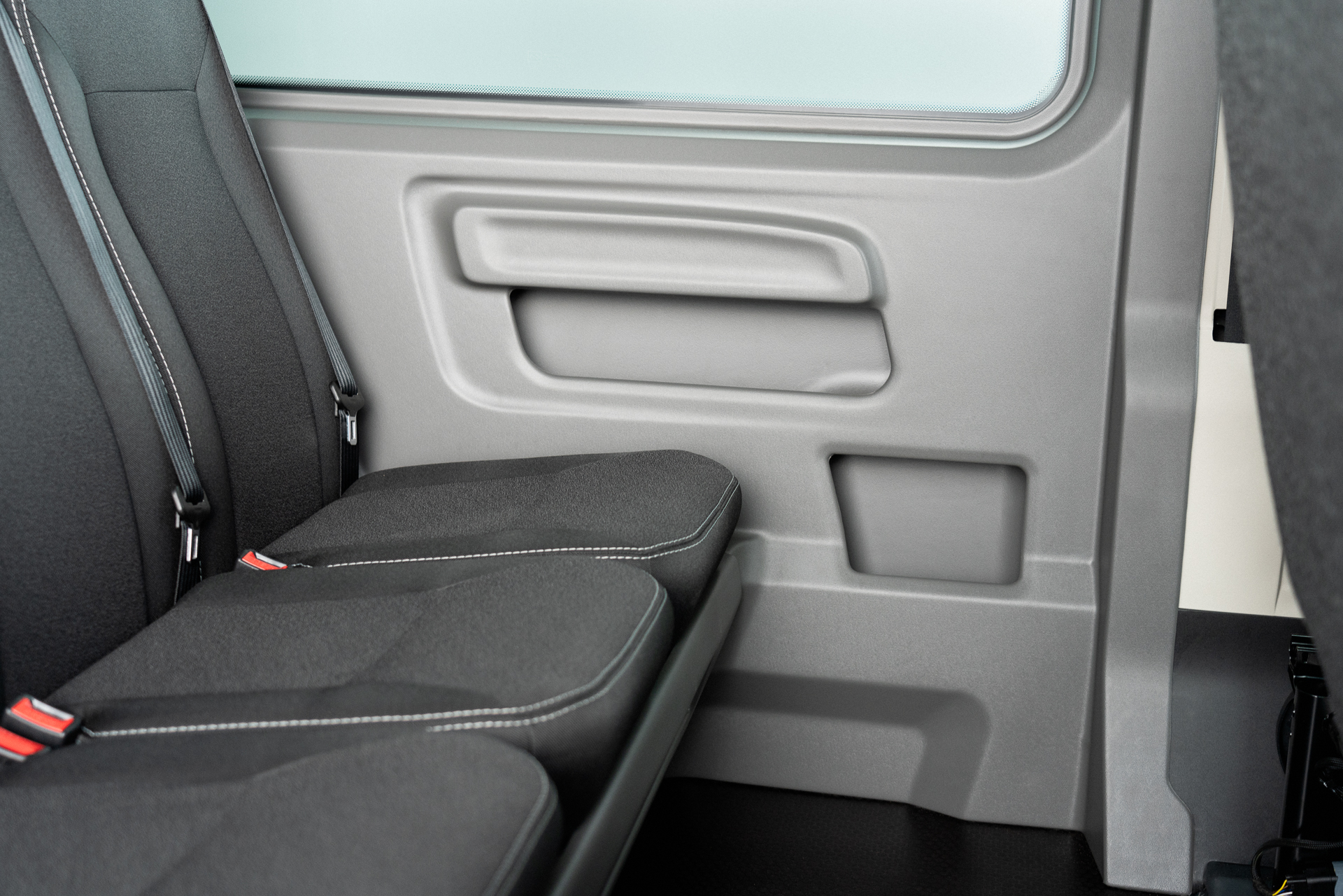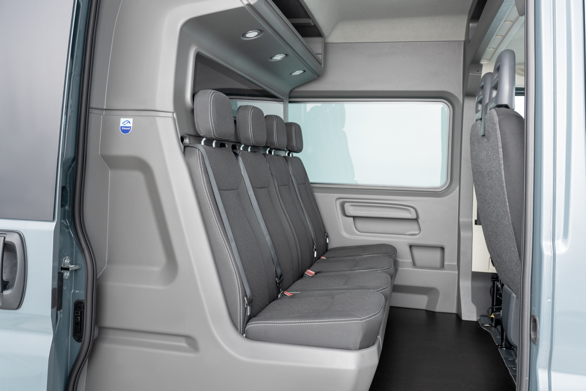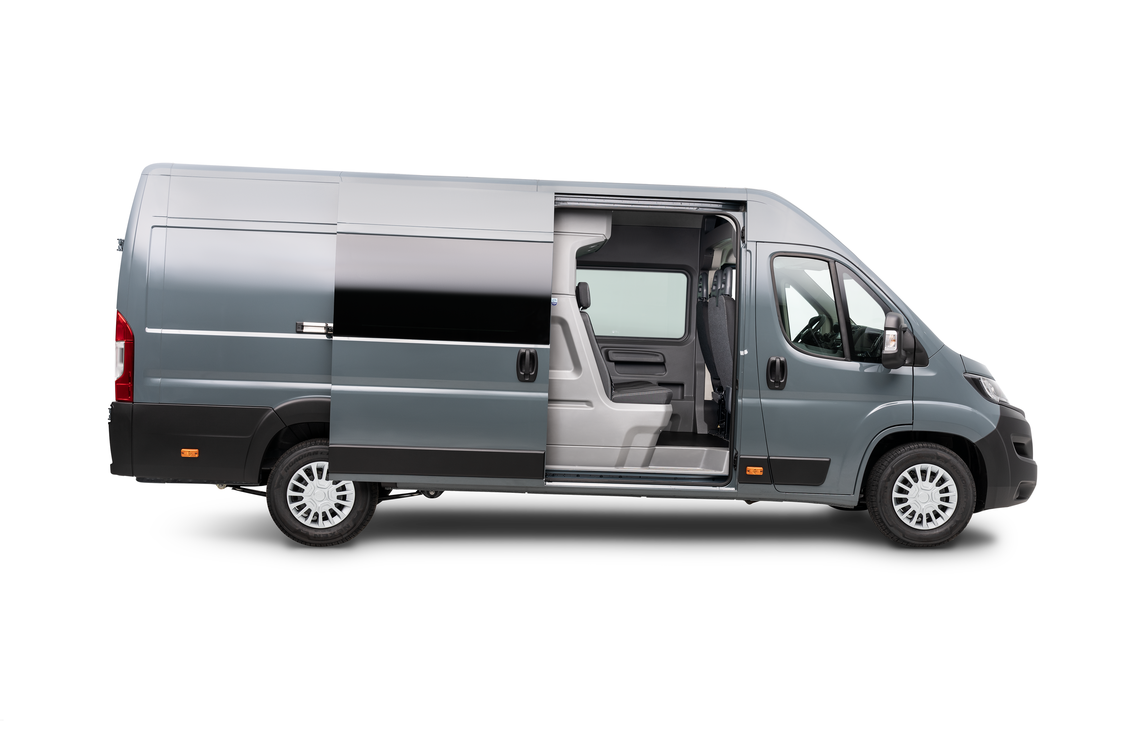 Dual Cab+ boasts a stylish design with fully protected left wall and sliding doors featuring thermoformed ABS trimming with recess. Add upholstered headlining and enjoy complete OEM style vehicle.